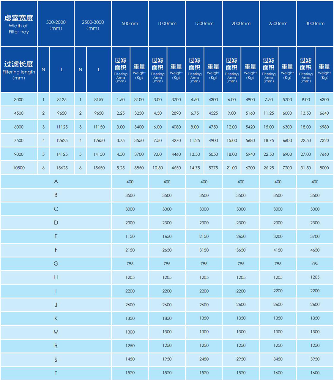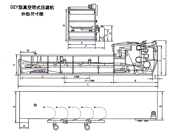 真空帶式壓濾機外形尺寸圖及技術參數2: